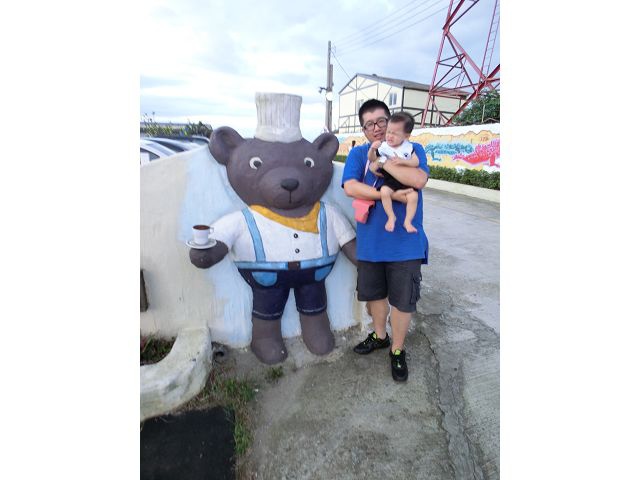這個大熊硬要抱小仔…搞的這小傢伙又哭哭啼了!